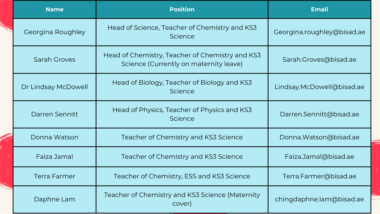 We follow the scheme of learning provided by 'Edexcel Exploring Science International'.